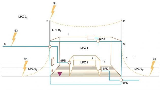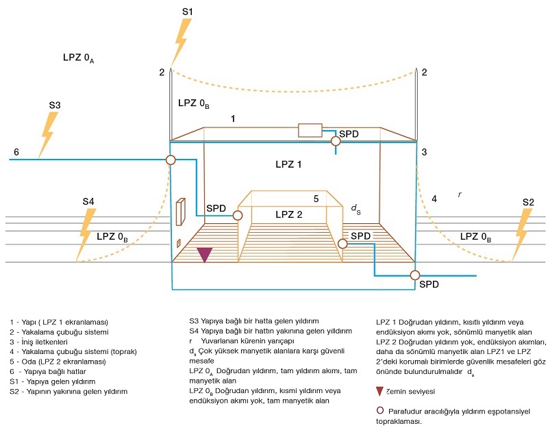 Yıldırım akımlarının elektromanyetik etkilerine (LEMP, yıldırım elektromanyetik darbesi) karşı koruma amaçlı bir yapı, homojen elektromanyetik ortamlara, yani LPZ’lere (Yıldırımdan Korunma Bölgeleri) bölünebilir. Bu bölgeler duvar, kat ve çatılarla kısıtlanmaz ve LPS (Yıldırımdan Korunma Sistemi), ekranlama ve parafudurların bütüncül koruma önlemleri sayesinde oldukça ideal bir hâl alır.