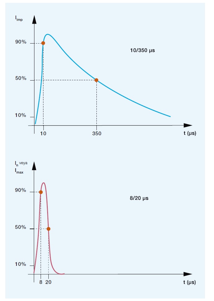 Enerji ≈ 0∫T i 2 dt. Dolayısıyla 10/350 μs’lik dalga biçimi ile ilişkilendirilen enerji, 8/20 μs’lik enerjiye sahip olandan çok daha fazladır (yaklaşık 10 kat daha fazla).