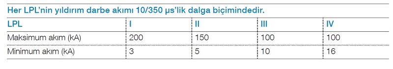 - LPZ 1: İç bölge. Bu bölgede objeler doğrudan yıldırım darbelerine maruz kalmaz ve endüksiyon akımları bölge 0A’dan daha azdır. Ekranlamaya sahiptir ve de gelen hatlarda tip 1 parafudurlarkurulmuştur;
