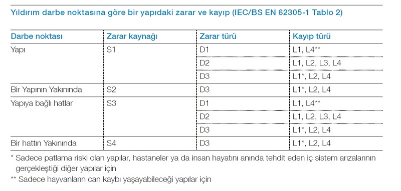 Zararın temel kaynağı yıldırım akımıdır. Aşağıdaki kaynaklar darbe noktasına göre ayrılmaktadır (çizim 1’e bakınız):